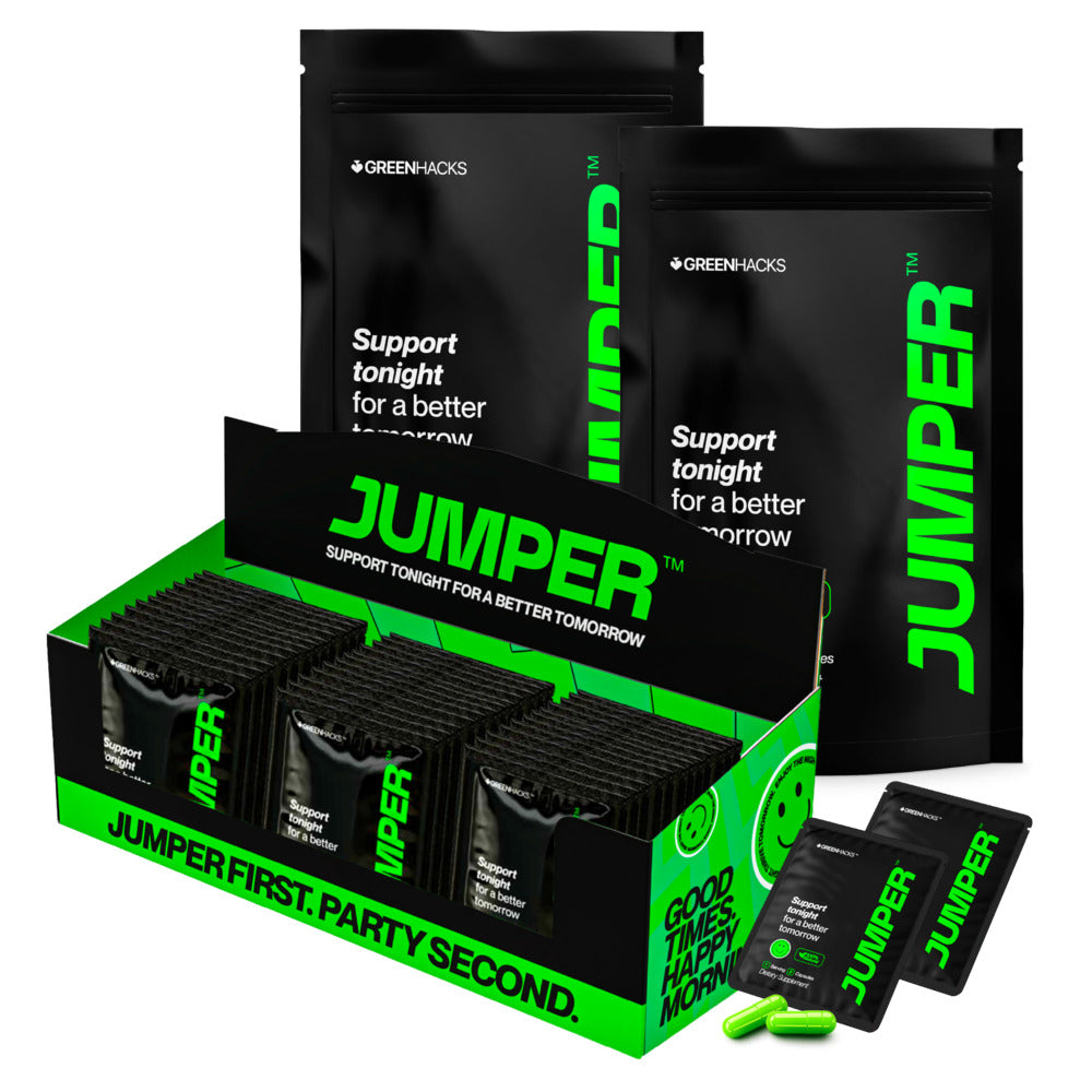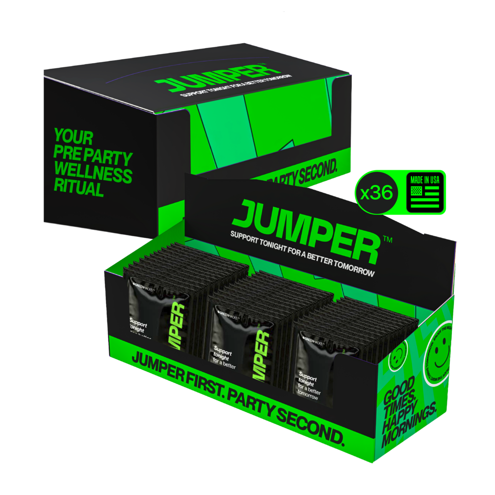 JUMPER is a clean, all-natural supplement taken before your first drink, formulated to support your body during social occasions and help you feel your best the next day.